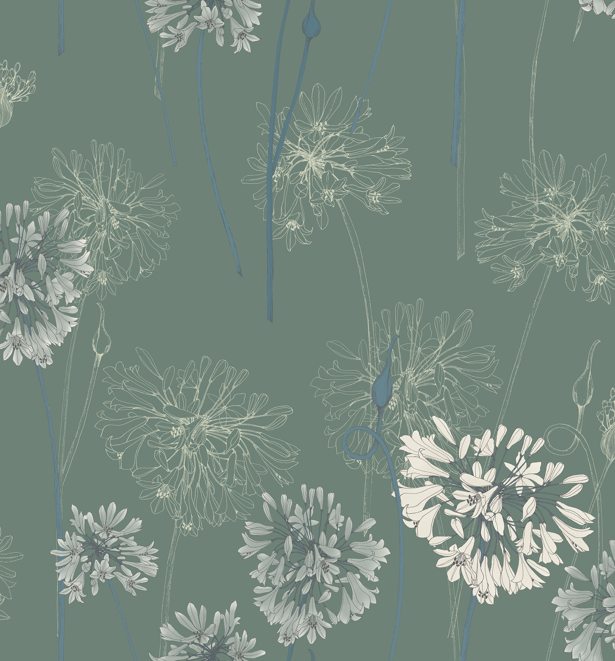 YUNNAN – Big bold Agapanthus flora is all that is required to make this design a stunning addition to the collection, and to any interior wall. Inspired by the mythical world of Shangri-La; this collection brings to life the lost world by way of floral metaphors that would have adorned the valleys and surrounding peaks of its snowy mountains.
