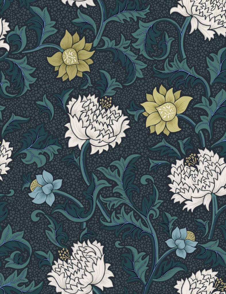 “Our Cantari Collection demonstrates a modern twist on classical damasks, as well as introducing high quality, hand drawn illustrations which reference archived artworks. This collection is representative of a time honoured style akin to the Arts and Crafts Movement, taking inspiration from nature with delicately drawn florals, exacting detail, yet introducing striking, bold colours.