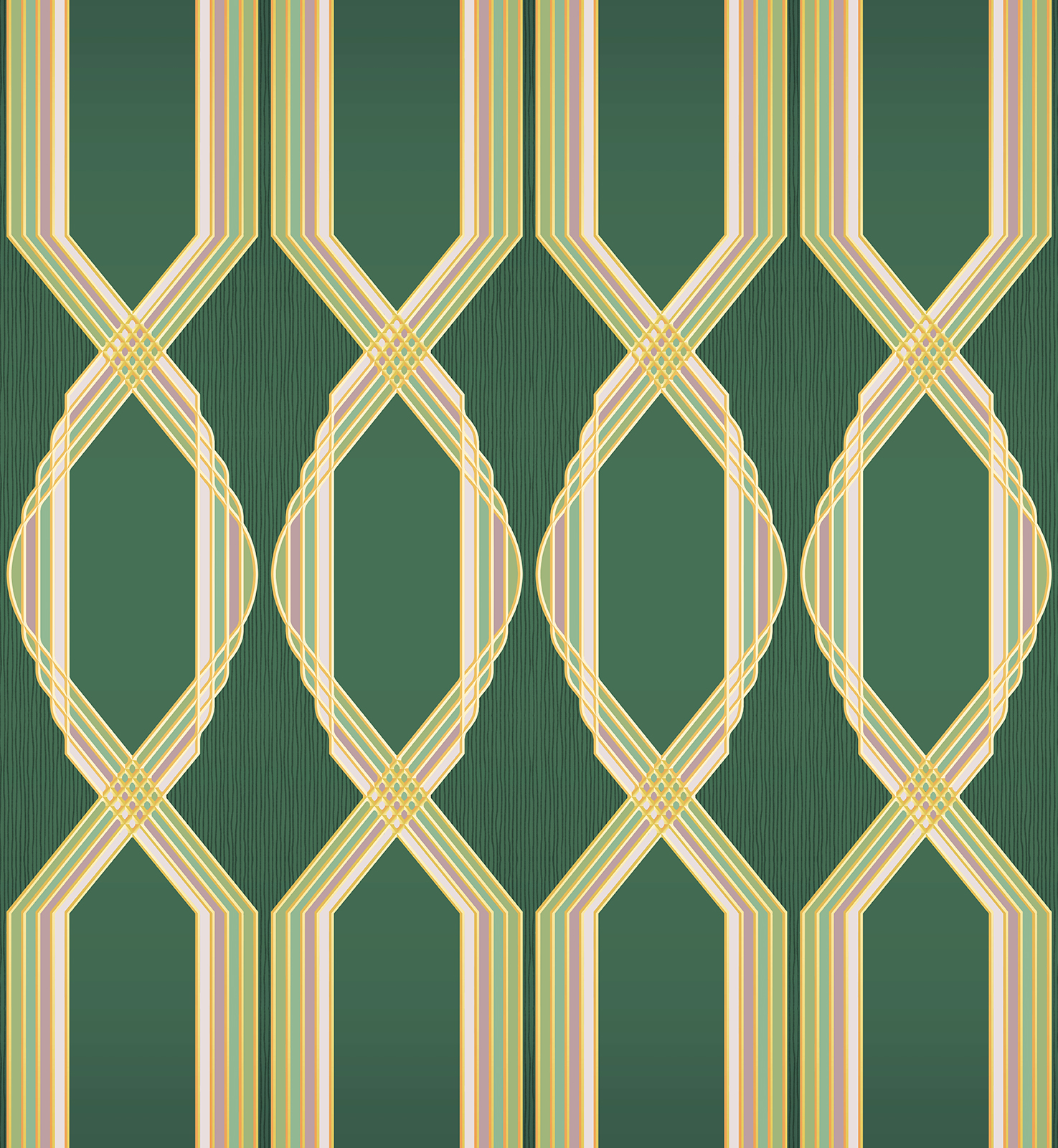 Symmetrical, geometric and streamlined, ‘Victoire’ is a simple, yet strikingly attractive wallpaper. Tastefully coloured in nude and blue, rich reds and greens, this is a wallpaper to grab attention.