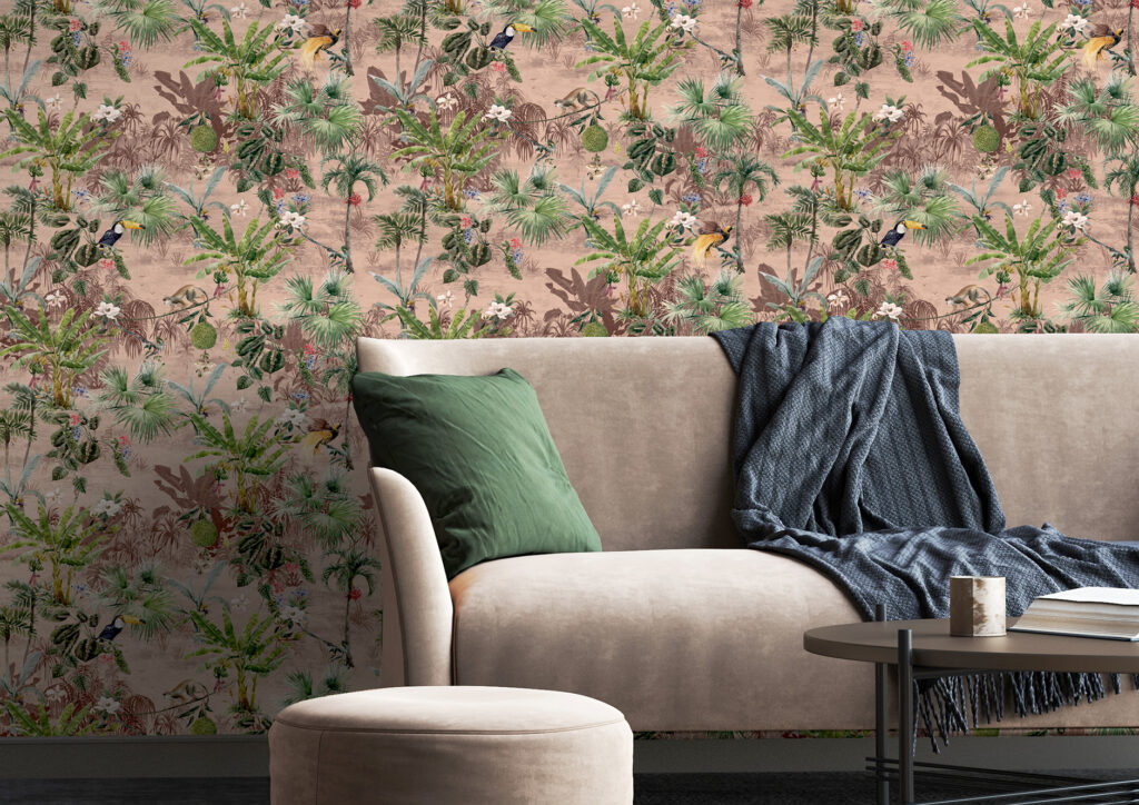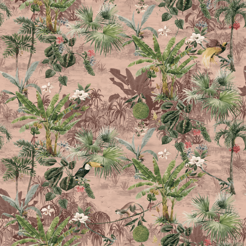 Discover the captivating charm of tropical wildlife and atmospheric jungle scenery with Yucatan, our reimagined wallcovering design. Vintage-inspired elements blend seamlessly with soft tones and layered foliage, creating a sense of depth and perspective. Yucatan is perfect for adding a touch of nature and sophistication to any interior space, bringing the beauty of the tropics indoors.